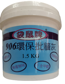 906 批牆灰結構稠密, 有優異的批塗施工性能。適用塡細小裂縫, 孔洞及牆面批塗, 乾後堅硬, 易打磨, 耐鹼性, 水性, 受潮後不易開裂, 剝落.